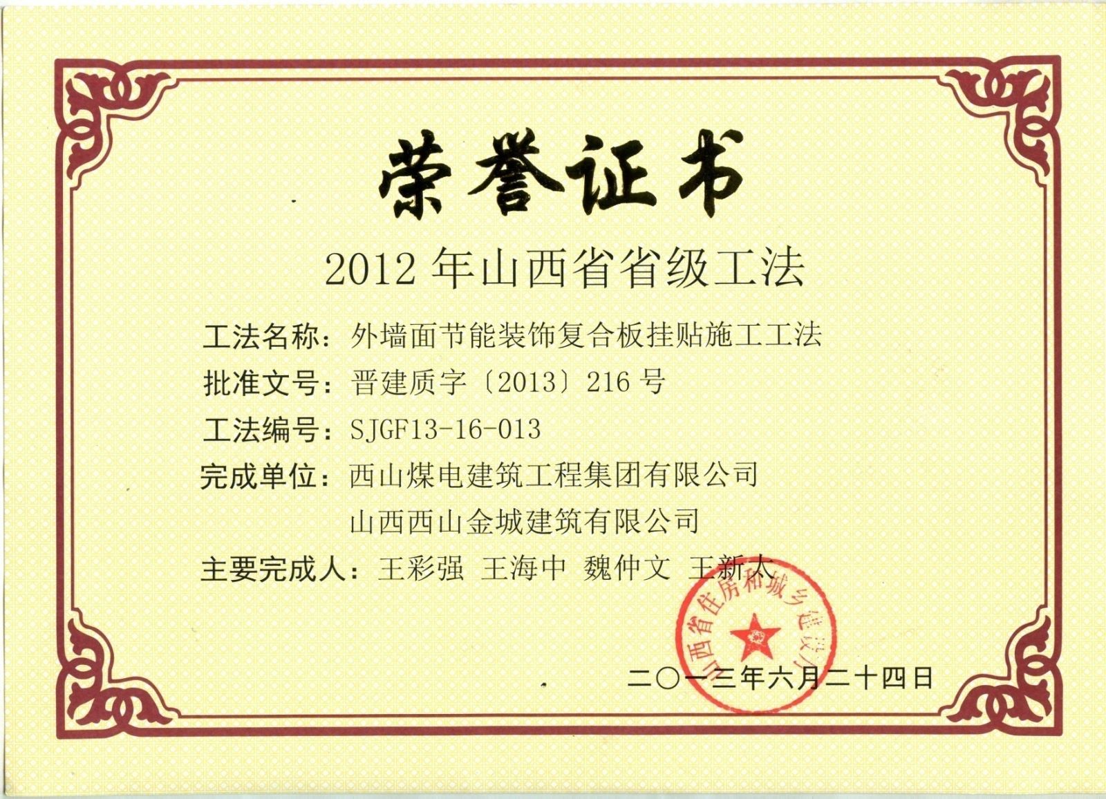 【山西省省级工法】 2012年外墙面节能装饰复合板挂贴施工工法