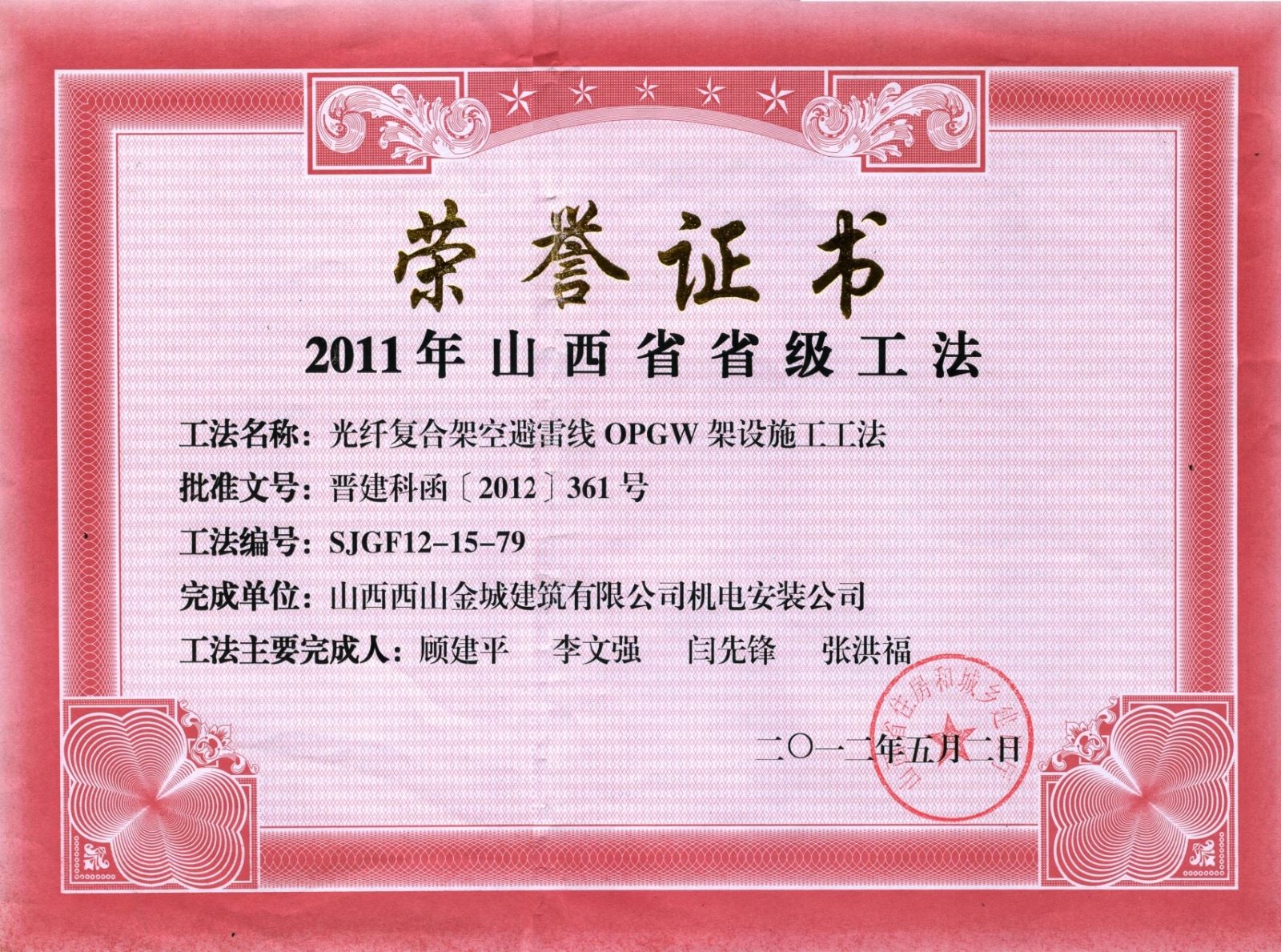 【山西省省级工法】 2011年光纤复合架空避雷线OPGW架施工工法