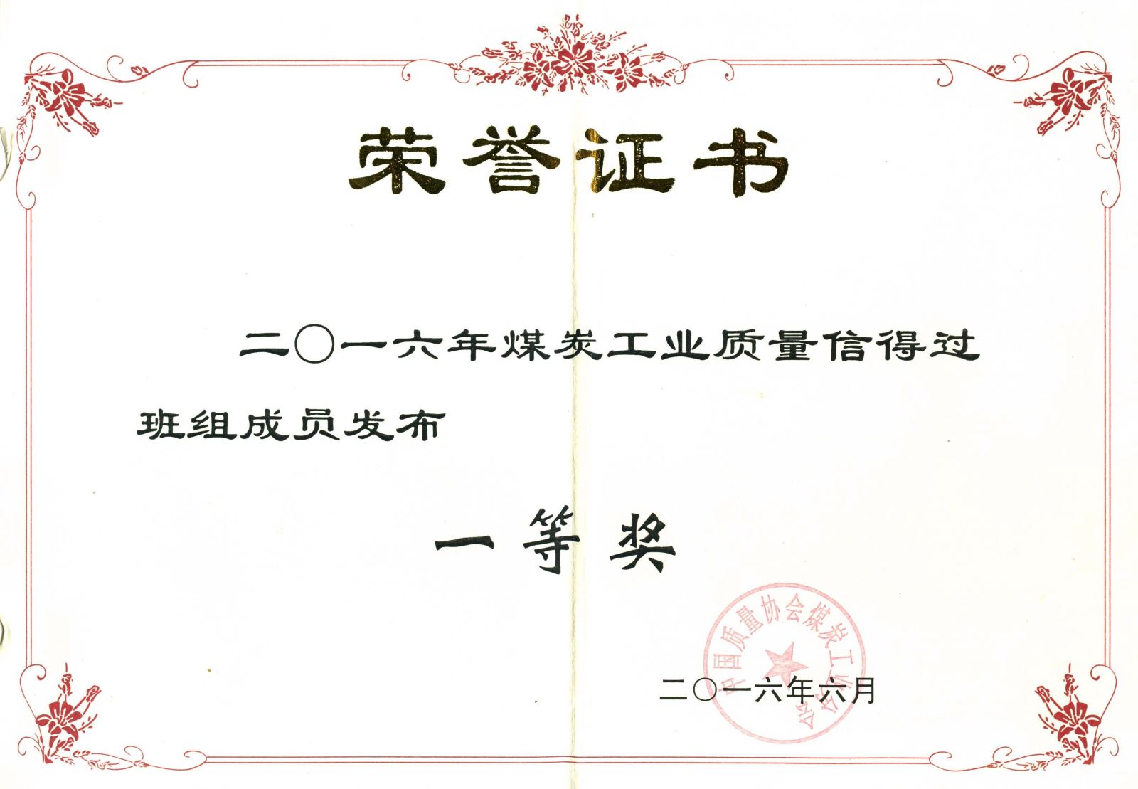 2016年煤炭工业质量信得过班组成员发...