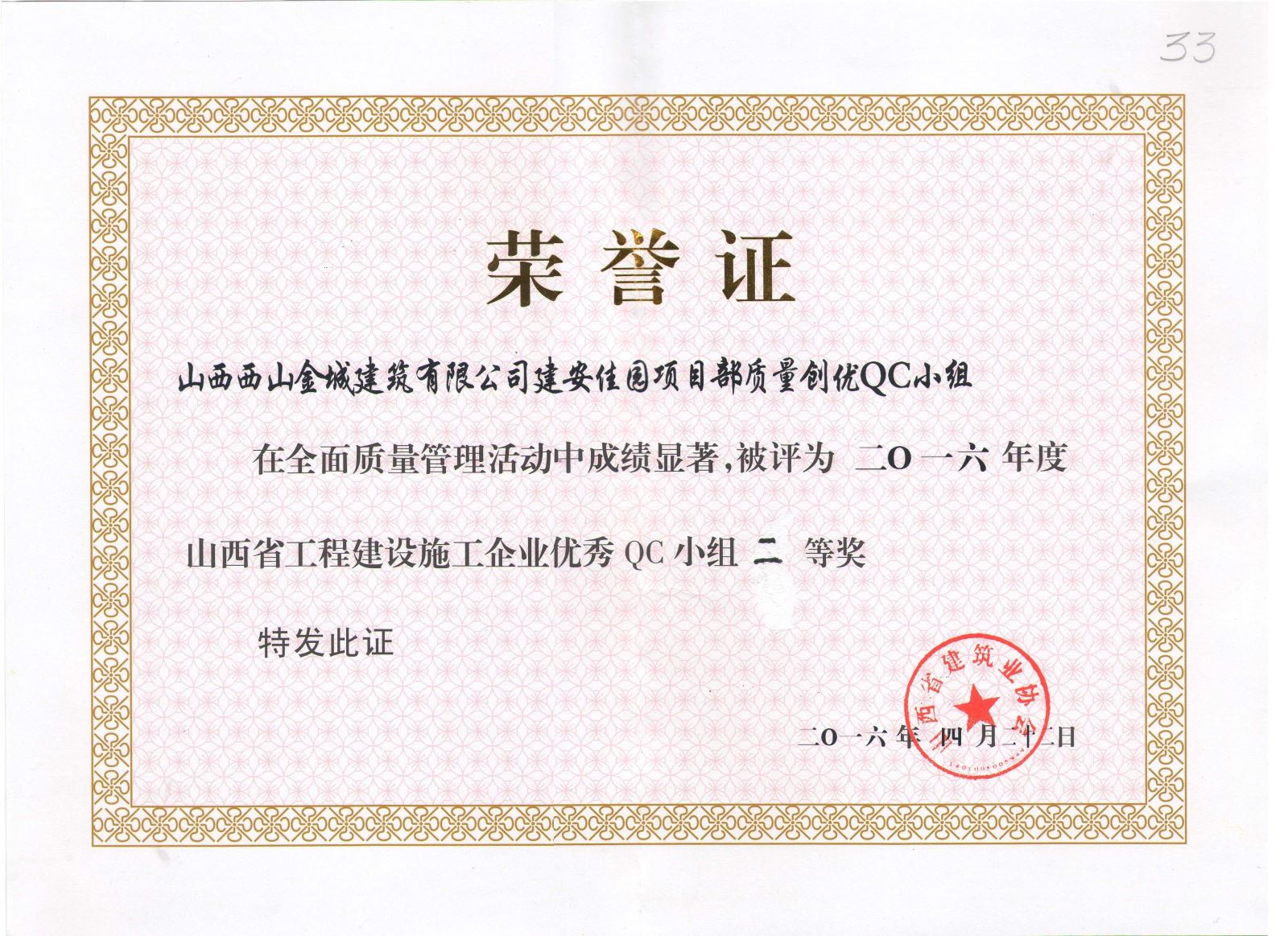 2016年度山西省煤矿建设协会“优秀施...
